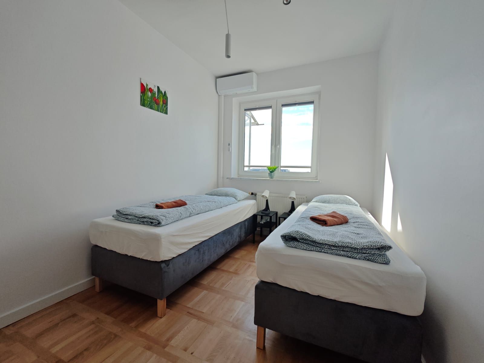 - Sypialnia 1 - dwa łóżka pojedyncze (z możliwością zestawienia w łóżko podwójne), klimatyzacja